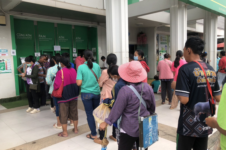 โดยเฉพาะที่ธนาคาร ธ.ก.ส.จังหวัดกาฬสินธุ์ มีประชาชน ทั้งผู้สูงอายุ กลุ่มผู้พิการ ต่างพากันเดินทางมาเข้าคิวรอเบิกเงินและกดเงิน เพื่อที่จะนำเงินไปใช้จ่ายในชีวิตประจำวัน และใช้จ่ายในครอบครัว ซึ่งหลายคนต่างตื่นเต้นและดีใจที่ได้รับเงินจำนวน 10,000 บาท พร้อมฝากขอบคุณไปยังรัฐบาล ภายใต้การนำของ น.ส.แพทองธาร ชินวัตร นายกรัฐมนตรี และคณะรัฐมนตรี ที่ให้การช่วยเหลือประชาชนและให้เงินจริง ตามนโยบายที่ได้ประกาศเอาไว้ และขอให้น.ส.แพทองธาร เป็นนายกรัฐมนตรีนานๆ และขอให้มีโครงการดีๆแบบนี้ออกมาอีก