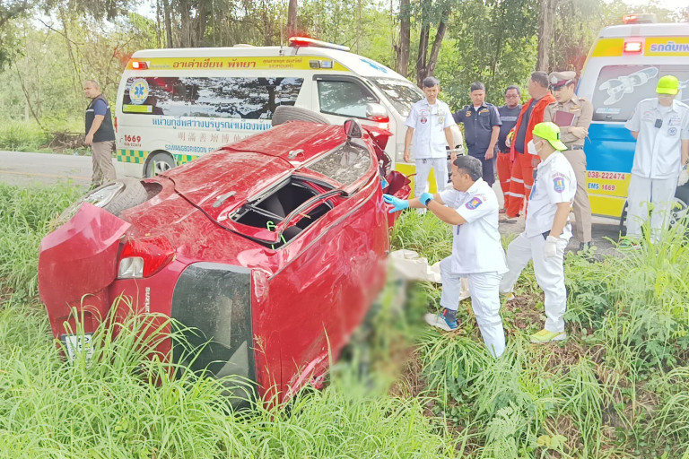 เช้าวันนี้ (25 ก.ย.) เวลา 08.30 น. ร.ต.อ.เนวิน สุนทวนิช รองสารวัตรสอบสวน สภ.ห้วยใหญ่ ได้รับแจ้งเหตุรถยนต์เก๋งเสียหลักลงร่องกลางถนนและมีผู้เสียชีวิต บริเวณถนน 331 ขาเข้าชลบุรี กม.10 หมู่ 11 ตำบลห้วยใหญ่ อำเภอบางละมุง จังหวัดชลบุรี จึงรีบรุดไปตรวจสอบพร้อมด้วยเจ้าหน้าที่กู้ภัยมูลนิธิสว่างบริบูรณ์ธรรมสถานเมืองพัทยา และอุปกรณ์ช่วยเหลือฉุกเฉิน