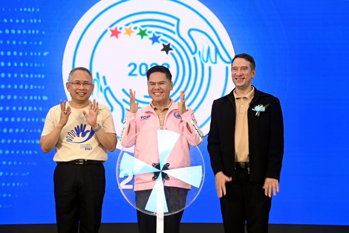 วันที่ 28 ก.ย.67 ที่เดอะสตรีท (The Street) รัชดา กรุงเทพฯ นายวราวุธ ศิลปอาชา รัฐมนตรีว่าการกระทรวงการพัฒนาสังคมและความมั่นคงของมนุษย์ (รมว.พม.) เป็นประธานในพิธีเปิดงานวันภาษามือโลกและงานสัปดาห์หูหนวกโลก ประจำปี 2567 ภายใต้หัวข้อ “Sign Up for Sign Language Right” ร่วมรณรงค์เพื่อสิทธิของผู้ใช้ภาษามือ โดยมี นายวิทยุต บุนนาค นายกสมาคมคนหูหนวกแห่งประเทศไทย คณะผู้บริหารกระทรวง พม. และคณะผู้บริหารสมาคมคนหูหนวกแห่งประเทศไทย ผู้แทนภาคีเครือข่ายคนพิการ เข้าร่วมงาน