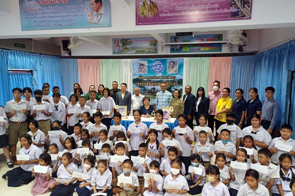 วันที่ 28 ก.ย.67 ที่โรงเรียนเทศบาล 5 (กระดาษไทยอนุเคราะห์) กาญจนบุรี นางสาวสุวรรณา ศุภชาติไกรสร ประธานมูลนิธิสันติภาพแม่น้ำแคว พร้อมด้วยนายวินิจ โรจนวงศ์ ประธานมูลนิธิเพื่อสวัสดิการสื่อมวลชนจังหวัดกาญจนบุรี พลเอกวิทยา จินตนานุรัตน์ รองประธานมูลนิธิสันติภาพแม่น้ำแคว พลตรีศรชัย มนตริวัตร อดีต รมช.มหาดไทย และอดีต ส.ส.กาญจนบุรี นายมิจิดา โยชิฮิโร กรรมการมูลนิธิสันติภาพแม่น้ำแคว นายวสันต์ ภูษิตกาญจนา นายกเทศมนตรีเมืองกาญจนบุรี นายสันติ พันธ์พุฒ ผู้อำนวยการโรงเรียนเทศบาล 5 (กระดาษไทยอนุเคราะห์) และแขกผู้มีเกียรติได้ร่วมทำพิธีมอบทุนการศึกษาให้แก่นักเรียน นักศึกษา ที่เรียนดีแต่ประสบปัญหาเกี่ยวกับเรื่องทุนทรัพย์ของมูลนิธิสันติภาพแม่น้ำแควประจำปี 2567 จำนวน 80 ทุน โดยมีคณะกรรมการสมาชิก มูลนิธิสันติภาพแม่น้ำแคว คณะครูอาจารย์ นักศึกษานักเรียน และผู้ปกครอง รวมถึงแขกผู้มีเกียรติชาวญี่ปุ่น ร่วมพิธี ณ ห้องประชุม อาคารเบญจรงค์ โรงเรียนเทศบาล 5 กระดาษไทย อนุเคราะห์ ตำบลบ้านใต้ อำเภอเมือง จังหวัดกาญจนบุรี
