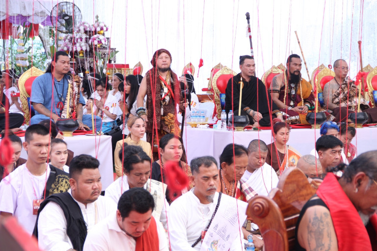 โดยมีคหบดีจากประเทศ สปป.ลาว เป็นประธานจุดเทียนชัย โดยมีพระเทพวชิรรังษี เจ้าอาวาสวัดป่าสุทธาวาส เจ้าคณะจังหวัดสกลนคร (ธ)เป็นประธานสงฆ์ มีพระเกจิอาจารย์ ร่วมนั่งปรกอธิษฐานจิตปลุกเสก พร้อมด้วยคณาจารย์สายฆราวาส โดยในพิธีพระเกจิอาจารย์ทั้งหมดได้ถ่ายทอดพลังเข้าใส่วัตถุมงคล และมีขันธ์น้ำมนต์ ผู้ร่วมพิธีต่างถ่ายภาพนำไปเสี่ยงโชค จากนั้น หลวงปู่ดุสิต ได้เมตตาเจิมฝ่ามือให้สาธุชน ที่มาร่วมงานหลายร้อยคน เพื่อเปิดดวง เสริมมงคล ต่อเส้นวาสนา ให้แก่ผู้ที่มาร่วมงานด้วย สำหรับหลวงปู่ดุสิตนั้น มีชื่อเสียง ในการจารเจิมฝ่ามือ ลงนะเศรษฐี ซึ่งผู้ที่มีความเชื่อ ความศรัทธา ต่าง ศรัทธาในพุทธคุณ เมื่อได้รับการเจิมการจารไปแล้วนั้น ก็ได้รับโชคลาภต่าง ๆ อย่างไรก็ดี ทั้งหมดก็เป็นการเสริมสิริมงคล เสริมกำลังใจ หลวงปู่ดุสิต เป็นหนึ่งในผู้ที่สร้าง ขุนช้าง ขึ้น โดยเป็นหนึ่งในวิชาที่เกี่ยวกับโชคลาภ ทรัพย์สิน โดยได้มีการสร้างรูปเคารพ ขุนช้าง ไว้ในวัดไผ่แขก เพื่อให้ผู้มีความศรัทธา ได้ไปกราบไหว้ขอพรกัน