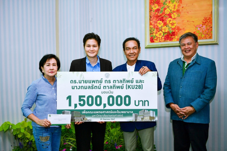 ดร.จงรัก วัชรินทร์รัตน์ อธิการบดีมหาวิทยาลัยเกษตรศาสตร์ รับมอบเงินบริจาคจากนิสิตเก่าและผู้มีจิตศรัทธาเพื่อร่วมสมทบการสร้างโรงพยาบาลมหาวิทยาลัยเกษตรศาสตร์ คณะแพทยศาสตร์ มหาวิทยาลัยเกษตรศาสตร์ ภายใต้โครงการอุทยานการแพทย์มหาวิทยาลัยเกษตรศาสตร์ ดังนี้ ดร.นายแพทย์ กร ตาลทิพย์ และนางกมลรัตน์ ตาลทิพย์ (KU28) บริจาคจำนวน 1,500,000 บาท และ นิสิตเก่า มก. KU28 บริจาคเพิ่มเติมอีกจำนวน 1,147,999 บาท ซึ่งทำให้ยอดบริจาคสะสมของนิสิตเก่า มก. KU 28 ณ ปัจจุบัน มีจำนวนรวมทั้งสิ้น 6,824,899 บาท