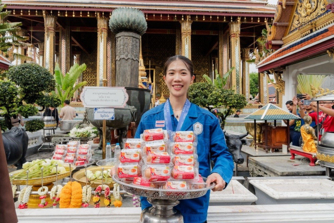 ทั้งนี้ หลังเสร็จพิธีถวายไข่ต้ม CP แล้ว น้องเทนนิสได้ส่งต่อความอิ่มท้องอิ่มใจให้น้องๆ เยาวชน โดยมอบไข่ไก่ต้มสุกให้ผู้แทนสถานศึกษา 9 แห่งในกรุงเทพ ได้แก่ โรงเรียนพระตําหนักสวนกุหลาบ โรงเรียนพิบูลประชาสรรค์ ศูนย์การศึกษาพิเศษส่วนกลาง โรงเรียนวัดชนะสงคราม โรงเรียนอนุบาลวัดปรินายก โรงเรียนวัดโสมนัส โรงเรียนวัดหงส์รัตนาราม โรงเรียนวัดพระเชตุพน และวิทยาลัยเทคโนโลยีตั้งตรงจิตรพณิชย