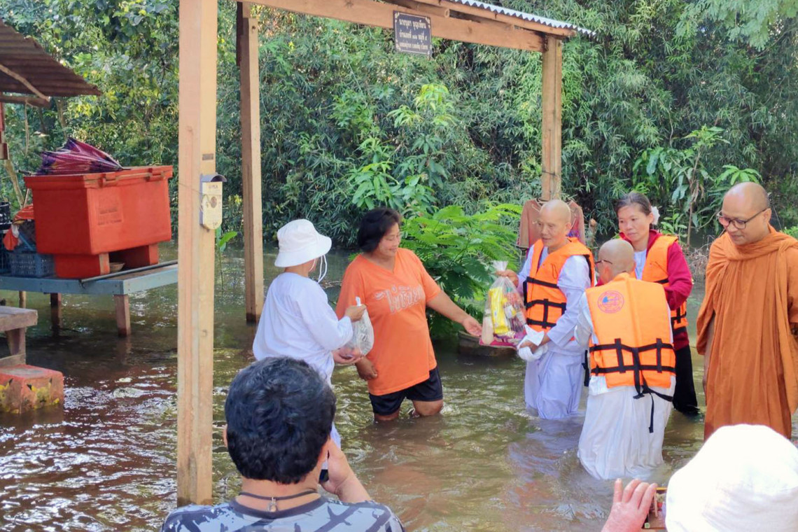 บึงกาฬ แม่น้ำสงครามยังล้นเอ่อท่วมทั้งบ้านและที่นา พระนำสิ่งของออกช่วยเหลือ