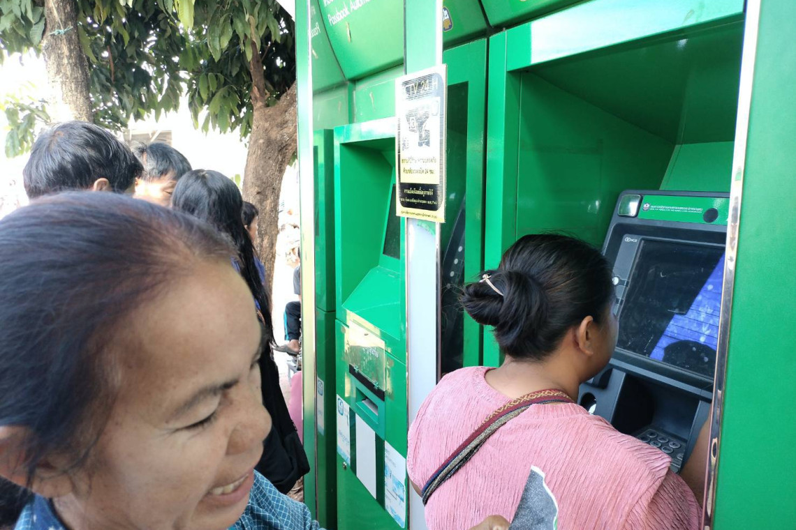 ประชาชนแห่รอผูกพร้อมเพย์และกดเงินดิจิทัลวอลเล็ต 10,000 บาท ที่ ธ.ก.ส. อำเภอกุดบาก จังหวัดสกลนคร