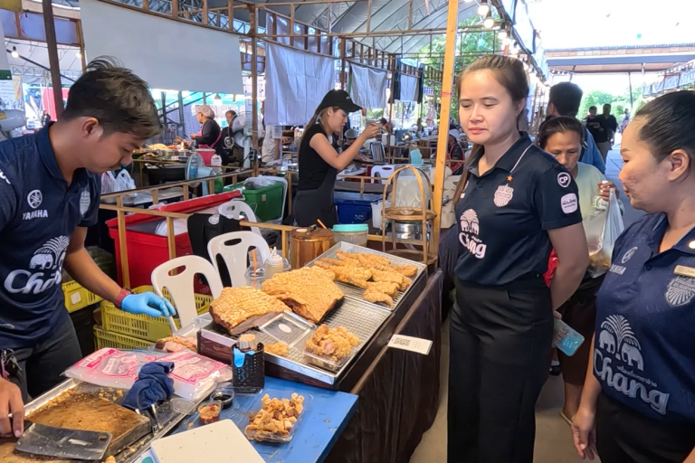 เมื่อวันที่ 1 ต.ค.67 ผู้สื่อข่าวรายงานว่า นายพงษ์มนัส พรมงาม หรือพี อายุ 32 ปี อดีตหนุ่มพนักงานฝ่ายขายบริษัทน้ำอัดลมชื่อดัง ที่มีเงินเดือนรายได้เฉลี่ย 2-3 หมื่นบาทต่อเดือน โดยทำงานมานานกว่า 6 ปี และได้มองหาอาชีพเสริม โดยการทำหมูกรอบ หางหมูกรอบ และหมูกรอบชาชู ขายหลังเวลาเลิกงาน ที่บริเวณริมถนนหน้าวิทยาลัยเกษตรและเทคโนโลยีบุรีรัมย์ ใกล้กับวงเวียนอนุสาวรีย์ รัชกาลที่ 1 ทุกวันจันทร์-ศุกร์ ในช่วงเย็นถึงค่ำ ระหว่างเวลา 18.00-22.00 น. เป็นเพิงเต็นท์ผ้าใบหรือเปิดท้ายขายของ