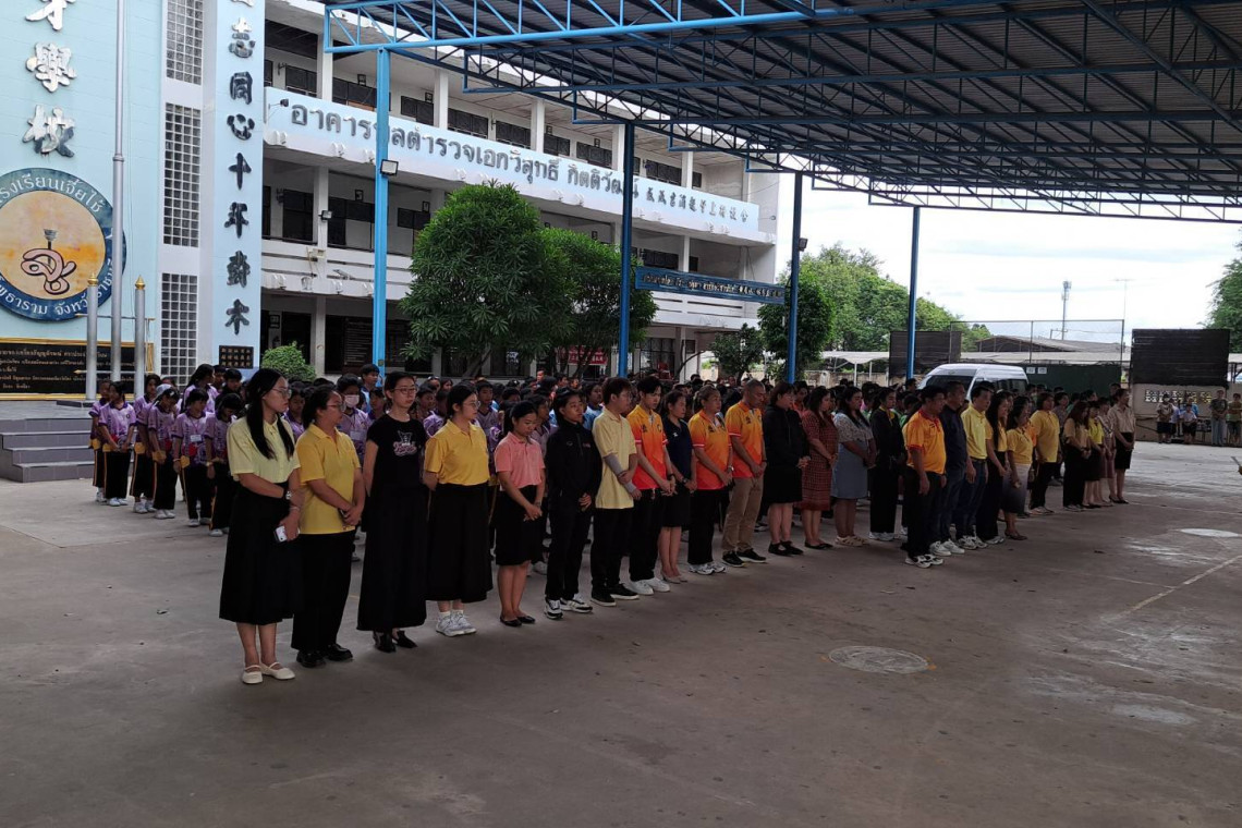 ราชบุรี ครูและนักเรียนโรงเรียนเจี๋ยไช้ อ.โพธาราม ร่วมยืนไว้อาลัยให้กับน้องๆนักเรียนและคุณครูที่เสียชีวิตจากเหตุการณ์รถบัสรับนร.ไปทัศนศึกษาเกิดยางระเบิดไฟไหม้มีเด็กได้รับบาดเจ็บและเสียชีวิตจำนวนมาก