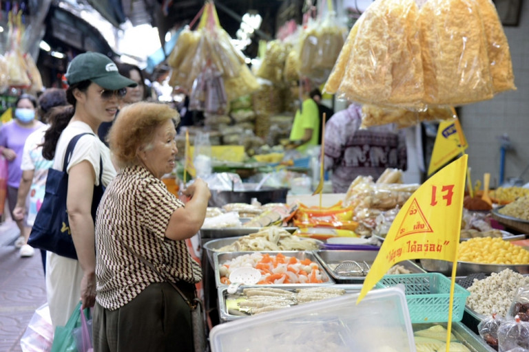 ชาวไทยเชื้อสายจีนเดินทางมาซื้อหาอาหารเจ ในเทศกาลถือศีลกินเจ ที่ตลาดเก่าเยาวราช กรุงเทพ เพื่อเป็นทำบุญ และชำระล้างใจให้ใสสะอาด ซึ่งเทศกาลนี้เริ่มตั้งแต่วันที่ 3-11 ตุลาคมนี้