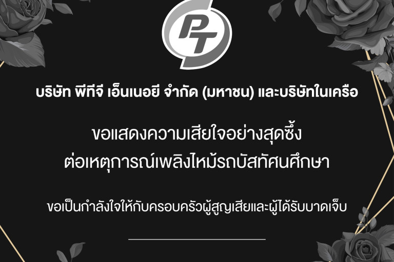 ทาง “บริษัท พีทีจี เอ็นเนอยี จำกัด (มหาชน) และบริษัทในเครือขอแสดงความเสียใจอย่างสุดซิ้งต่อเหตุการณ์เพลิงไหม้รถบัสทัศนศึกษา และขอเป็นกำลังใจให้กับครอบครัวผู้สูญเสียและผู้ได้รับบาดเจ็บ”