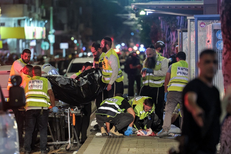 สุดอุกอาจ 2 คนร้ายใช้อาวุธปืนไรเฟิลกึ่งอัตโนมัติ และมีด ไล่ฆ่าผู้คนในย่านชานกรุงเทลอาวีฟ คร่าชีวิตประชาชน 8 ศพ และทำให้มีผู้บาดเจ็บ 12 ราย ส่วน 2 วายร้ายถูกตำรวจวิสามัญฯ