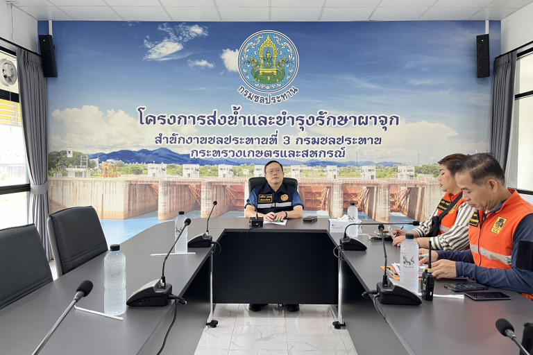 โครงการส่งน้ำและบำรุงรักษาผาจุก รายงานสถานการณ์น้ำและข้อมูลการบริหารจัดการน้ำเขื่อนทดน้ำผาจุก ให้แก่นายศิริวัฒน์ บุปผาเจริญ ผู้ว่าราชการจังหวัดอุตรดิตถ์