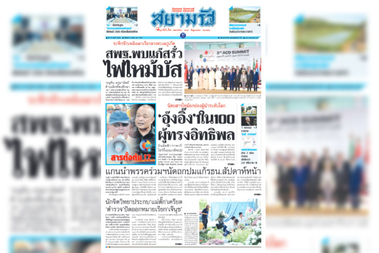 หน้า 1 หนังสือพิมพ์สยามรัฐรายวัน ฉบับวันศุกร์ที่ 4 ตุลาคม 2567