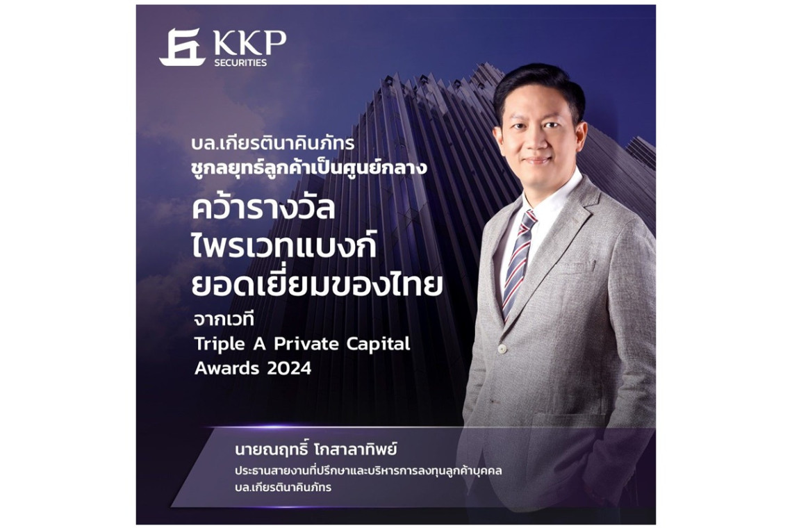บริษัทหลักทรัพย์ เกียรตินาคินภัทร จำกัด (มหาชน) คว้ารางวัล Best Private Bank in Thailand จากเวที Triple A Private Capital Awards 2024 ซึ่งจัดขึ้นโดย The Asset นิตยสารการเงินชั้นนำแห่งเอเชีย ด้วยกลยุทธ์ยึดลูกค้าเป็นศูนย์กลาง ตอบโจทย์ทุกความต้องการของลูกค้าแบบเฉพาะเจาะจงแต่ละราย