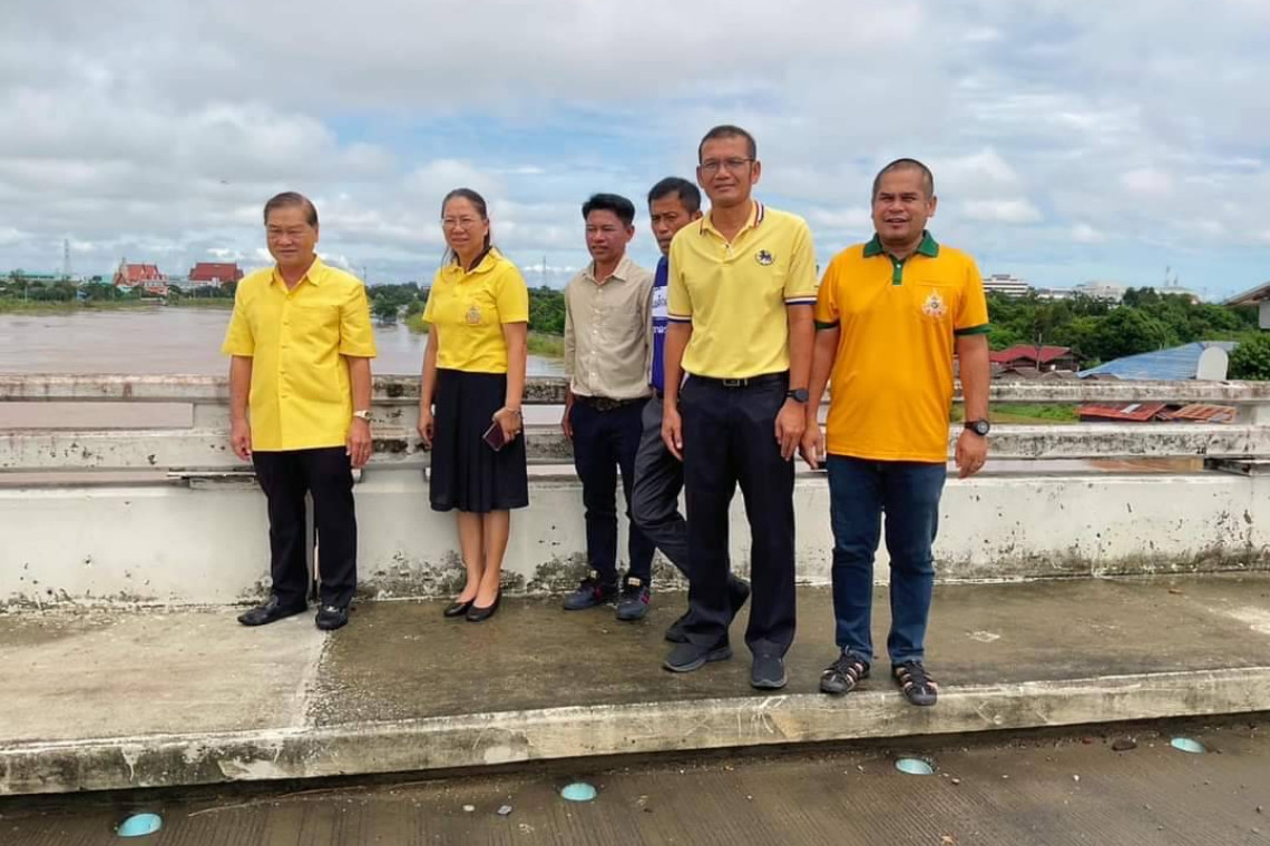 นายกองค์การบริหารส่วนจังหวัดอ่างทอง ลงพื้นที่ตรวจสอบระดับน้ำในแม่น้ำเจ้าพระยาบริเวณสะพานเลี่ยงเมืองอ่างทอง และ สะพานอำเภอป่าโมก