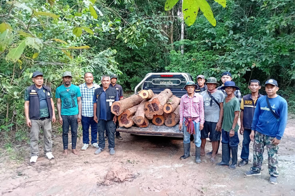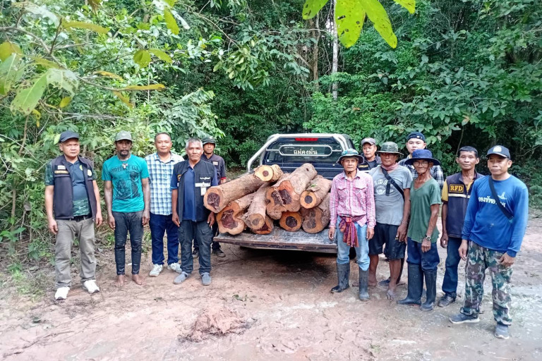 สุรินทร์ เจ้าหน้าที่ตำรวจ พร้อมด้วยหน่วยงานที่เกี่ยวข้อง เข้าตรวจสอบและยึดของกลางไม้พะยูง 7 ท่อน ขณะที่กลุ่มผู้ก่อเหตุ 4 คน พากันวิ่งหลบหนเจ้าหน้าที่เข้าป่าหาตัวไม่เจอ