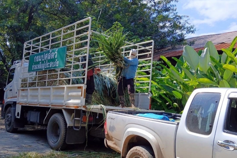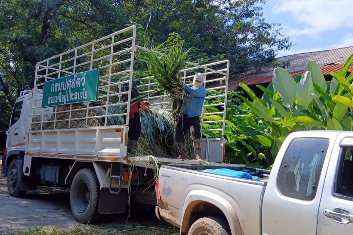 กรมปศุสัตว์จัดส่ง “หญ้าอาหารสัตว์พระราชทาน” เพื่อช่วยเหลือปางช้างที่ประสบอุทกภัยในอำเภอแม่แตง จังหวัดเชียงใหม่ จุดเก็บรักษาเสบียง คือ โครงการอนุรักษ์พันธุกรรมพืช อันเนื่องมาจากพระราชดำริสมเด็จพระเทพรัตนราชสุดาสยามบรมราชชนนี โดยจะกระจายช่วยเหลือปางช้างที่ได้รับผลกระทบต่อไปฃ