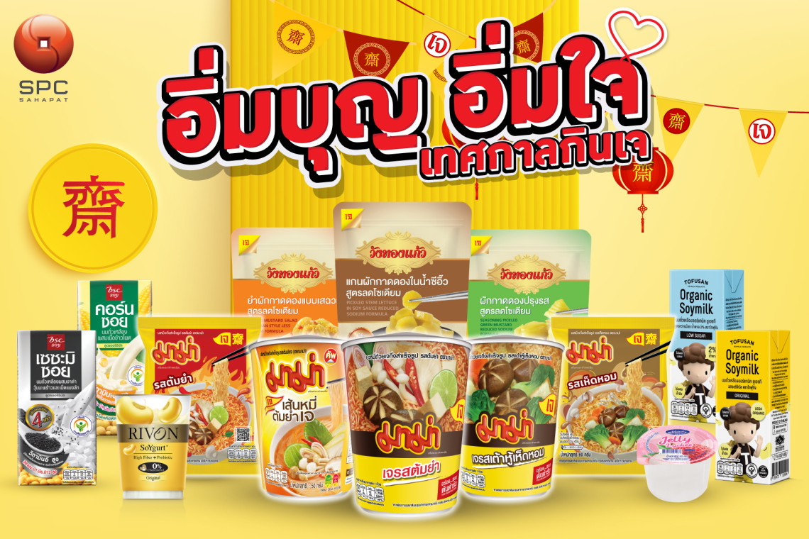บริษัท สหพัฒนพิบูล จำกัด (มหาชน) ผู้จัดจำหน่ายสินค้าอุปโภคบริโภคชั้นนำของไทย เชิญชวนประชาชนร่วมสืบสานประเพณีกินเจปี 2567 เพื่อให้ทุกคนได้ทั้งอิ่มบุญ อิ่มใจ และได้สุขภาพ กับการบริโภคอาหารเจที่มีประโยชน์ต่อสุขภาพ กับผลิตภัณฑ์อาหารเจจากหลากหลายแบรนด์ชั้นนำที่สหพัฒนพิบูลจัดจำหน่าย ไม่ว่าจะเป็น แบรนด์ “มาม่า” “วังทองแก้ว” “ริชเชส” “ริวอง” “บีเอสซี เซซะมิซอย” “โทฟุซัง” และผลิตภัณฑ์อื่นๆอีกมากมาย ที่คัดสรรมาเพื่อตอบโจทย์ทุกความต้องการเพื่อการบริโภคที่สะอาด ปลอดภัย ได้สุขภาพ