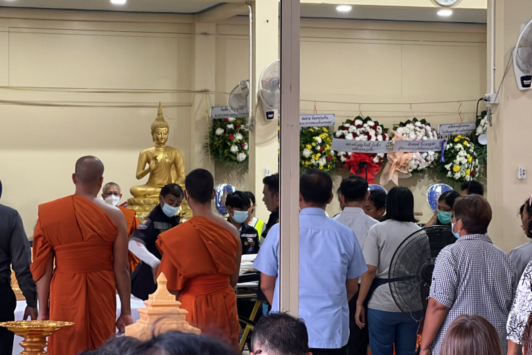 ล่าสุดเมื่อเวลา 17.30น.วันนี้ ( 8 ต.ค.67 ) ที่วัดแหลมทราย อ.เมืองสงขลา ญาติได้นำร่างของครอบครัวนี้ทั้ง 4 ราย ประกอบด้วย นายไชยชาญ อายุ 61 ปี นางณัฐปภัสร์ อายุ 47 ปี ภรรยา น.ส.กชวกร อายุ 18 ปี ลูกสาว และนายคเณศ อายุ 16 ปี ลูกชาย ออกจากโรงพยาบาลสงขลามาทำพิธีรดน้ำศพที่วัดแหลมทราย ท่ามกลางญาติพี่น้อง และคนที่รู้จักคุ้นเคยทั้งแวดวงการเมืองท้องถิ่นในเทศบาลนครสงขลาจำนวนมาก มาร่วมพิธีรดน้ำศพและร่วมไว้อาลัยให้กับการจากไปของทั้ง4คน และจะมีฌาปณกิจพร้อมกันในวันเสาร์นี้ที่วัดแหลมทราย