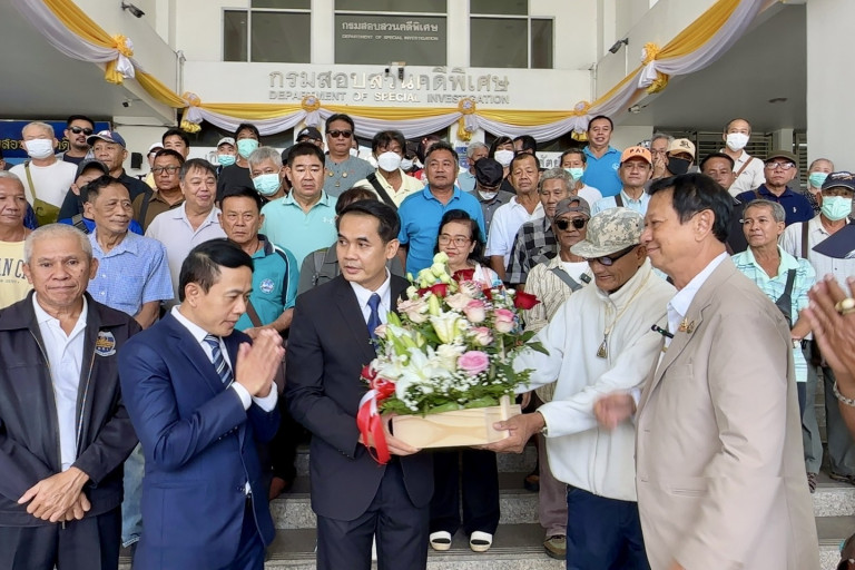 วันที่ 9 ต.ค.67 ที่กรมสอบสวนคดีพิเศษ นายกฤษฎา อินทามระ ฉายาทนายปราบโกง พร้อมอดีตพนักงานการท่าเรือแห่งประเทศไทย จำนวน 99 คน เดินทางมาพร้อมกระเช้าแสดงความขอบคุณ พ.ต.ต. ยุทธนา แพรดำ อธิบดีกรมสอบสวนคดีพิเศษ โดยมี ร.ต.อ.วิษณุ ฉิมตระกูล รองอธิบดีฯ และ ร.ต.อ.สุรวุฒิ รังไสย์ ผอ.กองคดีความผิดเกี่ยวกับการเสนอราคาต่อหน่วยงานของรัฐ “กองคดีฮั้วประมูล” กรมสอบสวนคดีพิเศษ เป็นตัวแทนรับมอบ