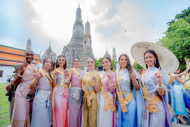 สุขใจ ณ ไทยแลนด์ ดินแดน Land Of Smile 73 สาวงามผู้เข้าประกวด มิสแกรนด์ อินเตอร์เนชั่นแนล 2024 เดินทางถึงเมืองไทยด้วยหัวใจที่เต็มไปด้วยความสุข ได้รับการต้อนรับสุดอบอุ่นจากแฟนนางงามชาวไทย ตั้งแต่วันที่เดินทางมาถึง เข้าพักที่โรงแรม โกลเด้นทิวลิป ซอฟเฟอริน กรุงเทพ พร้อมเดินเครื่องทำกิจกรรมมากมาย ส่งเสริมการท่องเที่ยวด้วยการสวมชุดไทยแบรนด์ Baanwangdoem7(บ้านวังเดิม) เที่ยวชมความงดงามของ วัดอรุณ แลนด์มาร์คแห่งพระนคร ให้ช่างภาพถ่ายภาพ ถ่ายคลิป ออกสู่สายตาชาวโลกอย่างสนุกสนาน แม้อากาศร้อนก็ไม่หวั่น สารภาพจากใจพร้อมกันว่า “I LOVE THAILAND”