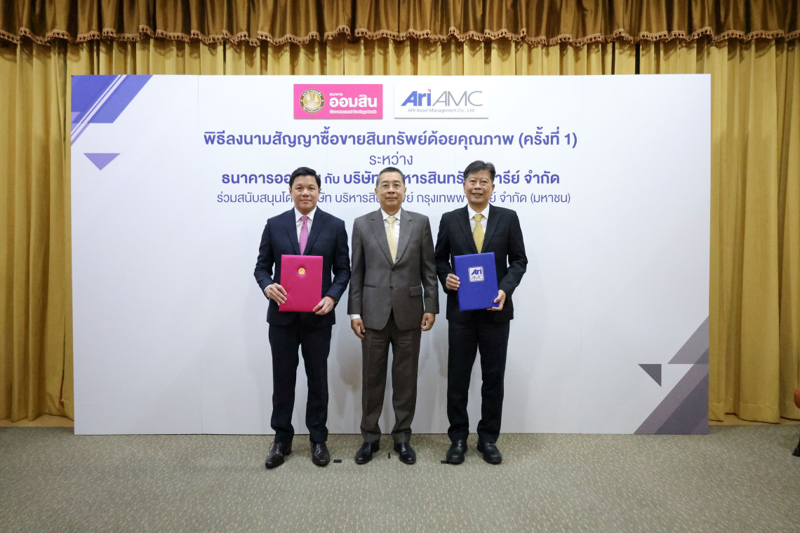นายวิทัย รัตนากร ผู้อำนวยการธนาคารออมสิน และนายสันธิษณ์ วัฒนกุล ประธานเจ้าหน้าที่บริหาร บริษัท บริหารสินทรัพย์อารีย์ จำกัด หรือ บบส.อารีย์ ร่วมลงนามสัญญาซื้อขายสินทรัพย์ด้อยคุณภาพ (ครั้งที่ 1) โดยมีนายบัณฑิต อนันตมงคล ประธานเจ้าหน้าที่บริหาร บริษัทบริหารสินทรัพย์ กรุงเทพพาณิชย์ จำกัด (มหาชน) หรือ BAM ร่วมเป็นสักขีพยาน ณ ธนาคารออมสิน สำนักงานใหญ่