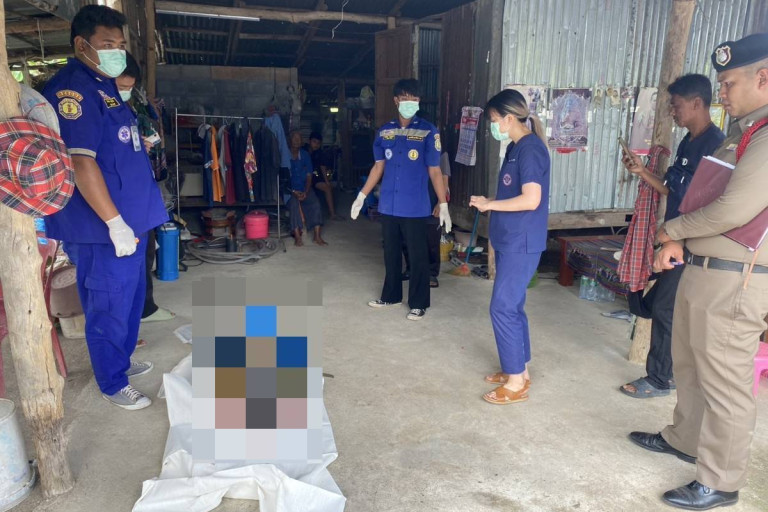 พบว่าที่หน้าบ้านหลังดังกล่าวมีเจ้าหน้าที่อาสาสมัครกู้ชีพของมูลนิธิขุนรัตนาวุธประจำจุดรอรับเหตุ ต.ทุ่งสมอ และจุดรอรับเหตุ ต.พนมทวน กำลังยืนรอเป็นผู้ช่วยเจ้าหน้าที่ตำรวจและแพทย์ในการชันสูตรพลิกศพ