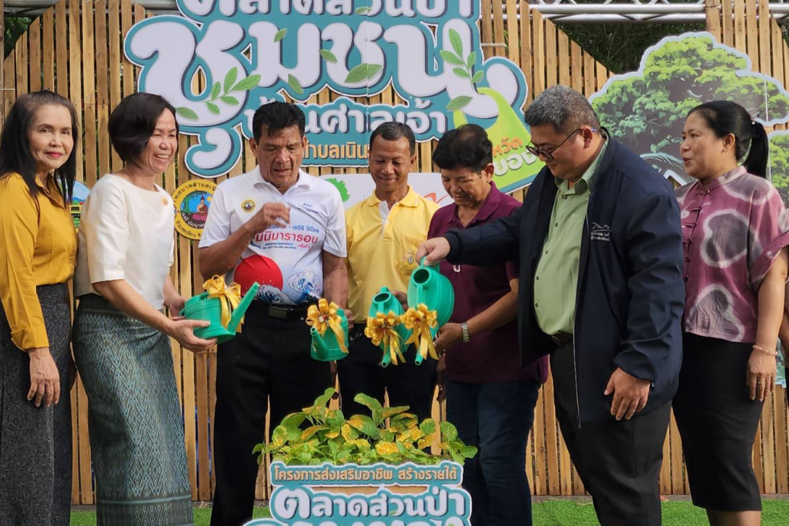 เมื่อวันที่ 12 ต.ค.67 ที่บริเวณสวนป่าชุมชนบ้านศาลเจ้า ต.เนินพระ อ.เมือง จ.ระยอง นายบุญธรรม ใยกล้า นายกเทศมนตรีตำบลเนินพระ เป็นประธานเปิดโครงการส่งเสริมอาชีพ สร้างรายได้ 'ตลาดสวนป่าชุมชน บ้านศาลเจ้า' ภายใต้กิจกรรมที่ 1 รักษ์ป่า 'ตามรอยพ่อ #ป่ากลางเมือง ป่ากลางใจ' ซึ่งจัดขึ้นโดยสำนักงานพัฒนาชุมชน เทศบาลตำบลเนินพระ กองทุนพัฒนาไฟฟ้า เขตนิคมอุตสาหกรรมมาบตาพุด จ.ระยอง ภายในงานมีการทำบุญตักบาตรถวายเป็นพระราชกุศลแด่พระบาทสมเด็จพระบรมชนกาธิเบศร มหาภูมิพลอดุลยเดชมหาราช บรมนาถบพิตร เนื่องในวันคล้ายวันสวรรคต บูธจำหน่ายสินค้าผลิตภัณฑ์ชุมชน หรือโอทอป 50 บูธ โดยเปิดโอกาสให้ประชาชนในพื้นที่นำสินค้าในชุมชนมาวางขาย และกิจกรรมแจกกล้าพันธุ์ไม้ เพื่อร่วมกันปลูกป่าชุมชนถวายเป็นพระราชกุศลฯ รวมทั้งการจัดสวนถาดสร้างอาชีพด้วย จัดขึ้นระหว่างวันที่ 12-13 ต.ค.นี้ ภายใต้บรรยากาศของสวนป่าของชุมชนที่มีอุดมสมบูรณ์ และร่มรื่น งานเริ่มตั้งแต่เวลา 10.00 น.-20.00 น.