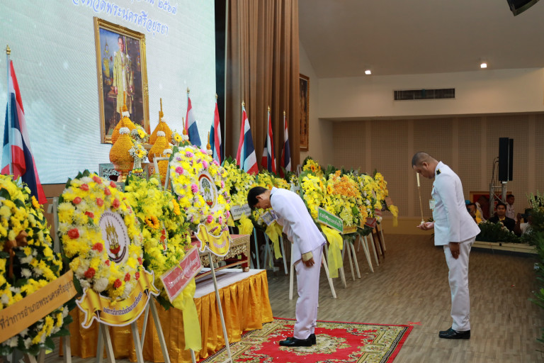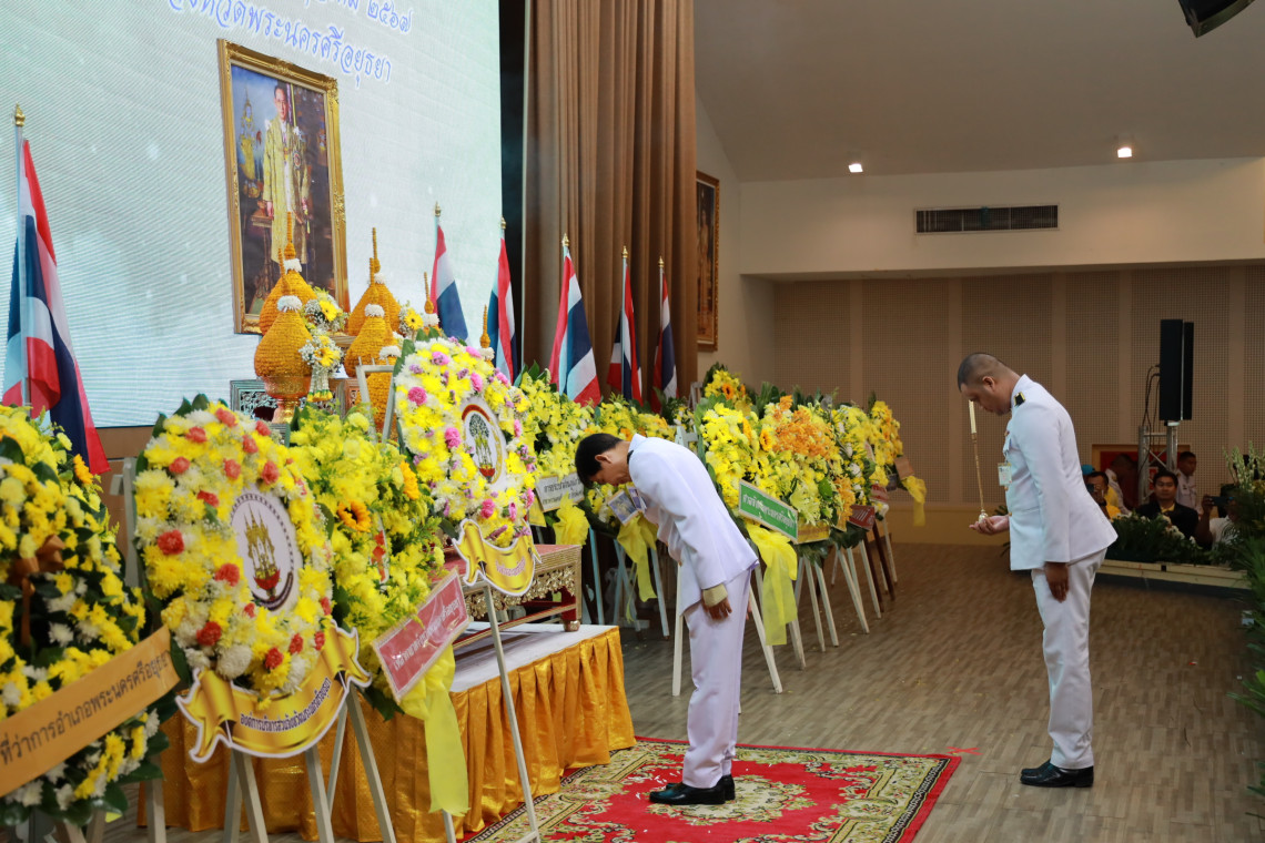 จากนั้นเวลา 08.00 น. นายนิวัฒน์ รุ่งสาคร ผู้ว่าราชการจังหวัดพระนครศรีอยุธยา นำส่วนราชการ ผู้พิพากษาหัวหน้าศาล อัยการ ข้าราชการพลเรือน ตุลาการ ทหาร ตำรวจ ประชาชนทุกหมู่เหล่า ร่วมพิธีวางพวงมาลา หน้าพระบรมฉายาลักษณ์ พระบาทสมเด็จพระพระบรมชนกาธิเบศร มหาภูมิพลอดุลยเดชมหาราช บรมนาถบพิตร เนื่องในวันที่ 13 ตุลาคม ของทุกปี พระบาทสมเด็จพระเจ้าอยู่หัว ทรงพระกรุณาโปรดเกล้าโปรดกระหม่อม ให้เป็น “วันนวมินทรมหาราช”