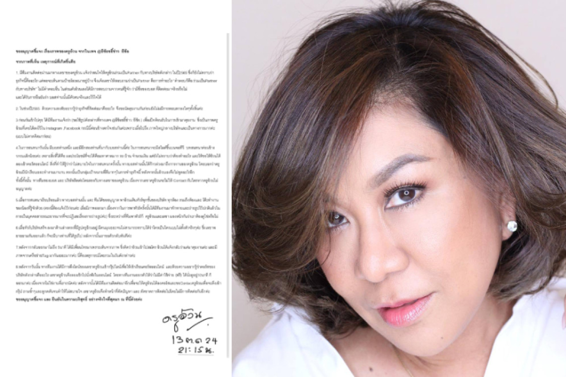ต่อมา เมื่อวันที่ 13 ต.ค. ที่ผ่านมาทางครูอ้วนออกแถลงการณ์ชี้แจงโดยละเอียดเกี่ยวกับที่มาที่ไปของภาพดังกล่าว พร้อมยืนยันความบริสุทธิ์ว่าไม่มีส่วนเกี่ยวข้องกับบริษัทดังกล่าว