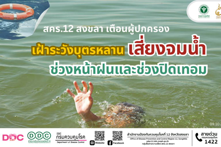 สคร.12 สงขลา เตือนผู้ปกครอง เฝ้าระวังบุตรหลาน เสี่ยงจมน้ำช่วงหน้าฝนและช่วงปิดเทอม