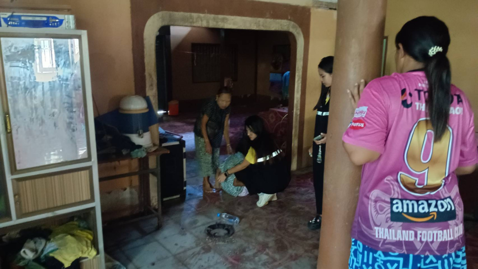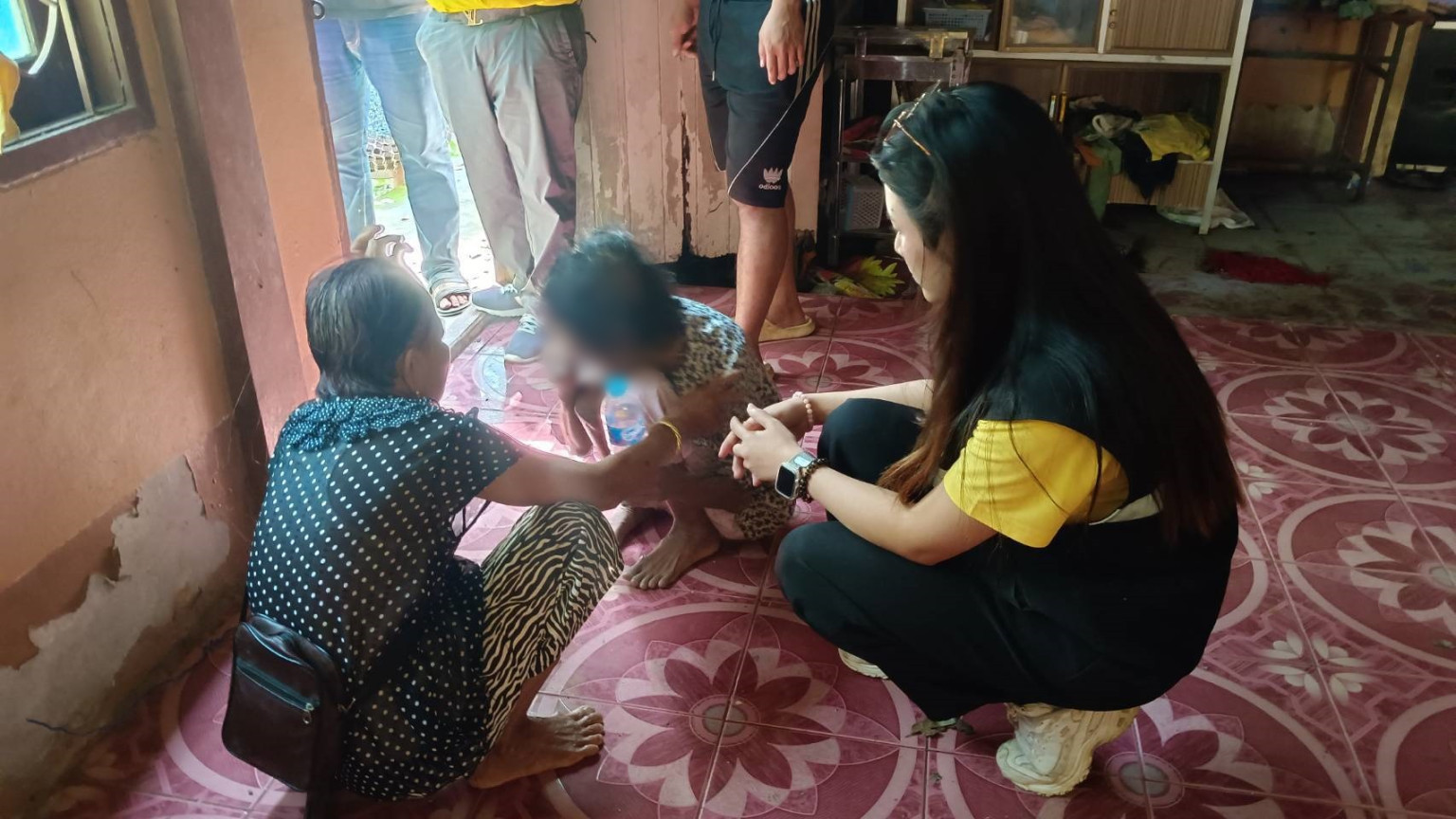 เมื่อเดินทางไปถึง ซึ่งเป็นบ้านสองชั้นครึ่งปูนครึ่งไม้ พบชาวบ้านจำนวนหนึ่งกำลังยืนมุงอยู่บริเวณหน้าบ้าน เข้าไปตรวจสอบได้ยินเสียงร้องโหยหวนออกมาจากภายในบ้าน เข้าไปตรวจสอบ พบภาพสุดเวทนา เป็นผู้หญิงรูปร่างผอมพิการขาทั้งสองข้างเดินไม่ได้ เปลือยกายอยู่ภายในห้องน้ำ เจ้าหน้าที่จึงหาเสื้อผ้าให้สวมใส่ และ ช่วยกันนำตัวออกมาจากห้องน้ำ โดยพบว่าสติไม่สมประกอบ และ พิการ พยายามสอบถามแต่ไม่สามารถตอบได้ เบื้องต้นพบว่ามีอาการหิวข้าว จึงช่วยเหลือเบื้องต้น