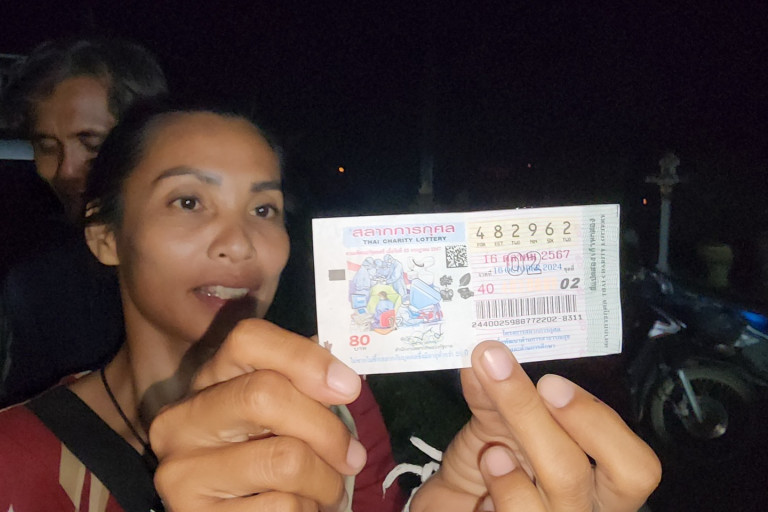 และตนได้ตั้งจิตอธิฐานบอกกับองค์พญานาคว่า ช่วงนี้มีเคราะห์เสียเงิน ขอให้หลุดพ้นจากความทุกข์ทั้งปวงและขอให้บันดาลให้มีโชคลาภ ได้ถูกหวยก่อนวันออกพรรษาด้วยเถิด ปรากฏว่า พอหวยออก ได้ฟังประกาศจากทีวี ตนบอกญาติๆว่าเลขที่ออกนี้ทำไมรู้สึกคุ้นๆ สงสัยว่าจะถูกรางวัลที่ 1 แต่ก็คิดในใจว่าคงไม่ถูกหรอกเพราะหลายๆงวดที่ผ่านมาก็ไม่เห็นเคยถูกมีแต่เฉียดๆ แต่ก็รีบกลับบ้านไปค้นสลากกินแบ่งรัฐบาลที่ซื้อมาตรวจดู ดีใจมากที่งรู้ว่าตนถูกรางวัลที่ 1 จริงๆ ตอนนี้ตั้งใจว่าจะไปขึ้นเงินเองและถือโอกาสพาลูกสาวไปเที่ยวด้วย แต่จะนำเงินไปใช้หนี้ก่อน อีกส่วนจะได้นำเงินมาต่อเติมบ้าน และแบ่งไปทำบุญ ส่วนที่เหลือจะเก็บไว้เป็นทุนในการประกอบอาชีพ.