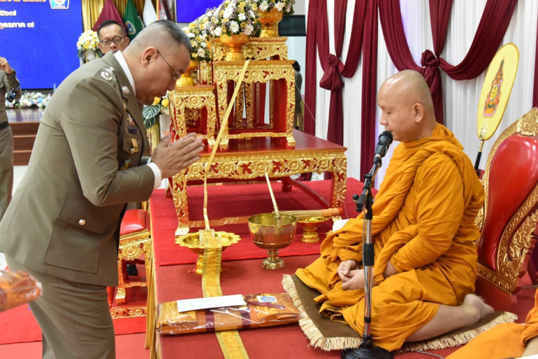 พลตำรวจโท นัยวัฒน์ ผะเดิมชิต ผู้บัญชาการตำรวจภูธรภาค 7 กล่าวต่อว่า สุดท้ายนี้ ผมขออาราธนาคุณพระศรีรัตนตรัย และสิ่งศักดิ์สิทธิ์ทั้งหลาย/ตลอดจนเดชะพระบารมี แห่งองค์พระบาทสมเด็จพระวชิรเกล้าเจ้าอยู่หัว สมเด็จพระนางเจ้าสุทิดาฯ พระบรมราชินี ได้โปรดพระราชทานประทานพร ให้ข้าราชการตำรวจภูธรภาค 7 ทุกท่าน และครอบครัว แคล้วคลาดจากภยันตรายทั้งปวง มีสุขภาพพลานามัย ที่สมบูรณ์แข็งแรง ประสบแต่ความสุข ความเจริญ และสัมฤทธิ์ผลในสิ่งอันพึงปรารถนา ทุกประการ