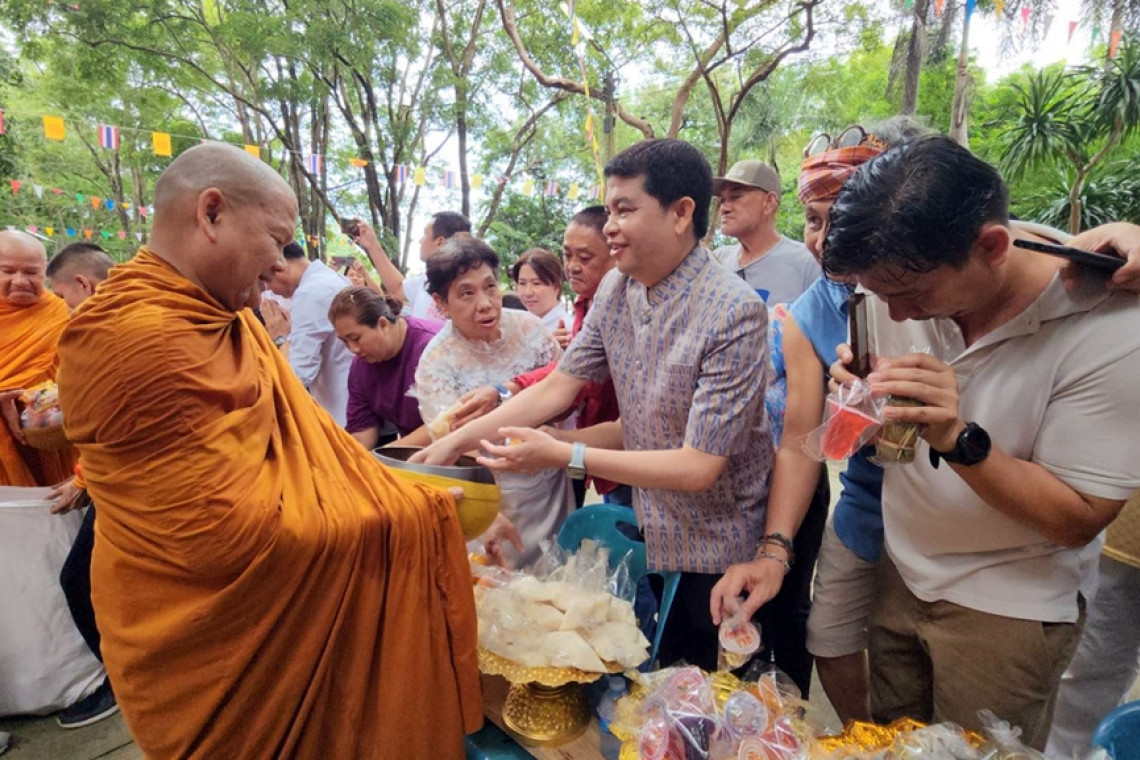 เมื่อเวลา 08.00 น. วันที่ 18 ต.ค.67 ที่วัดคีรีภาวนาราม ต.พลา อ.บ้านฉาง จ.ระยอง ผู้สื่อข่าวรายงานว่า ชมรมบ้านฉางท่องเที่ยวศิลปะและสิ่งแวดล้อม ได้ร่วมกับคณะกรรมการวัดคีรีภาวนาราม และประชาชนชาว อ.บ้านฉาง ได้จัดงานทำบุญตักบาตรเทโวโรหณะ เนื่องในเทศกาลวันออกพรรษา ประจำปี 2567 ขึ้น โดยมีนายกิติพงศ์ อุระวัตร นอภ.บ้านฉาง นางศุภร จุลทอง ประธานกลุ่มวิสาหกิจชุมชนริช 865 นายสุมิตร โสภาศรีพันธ์ ประธานชมรมบ้านฉางท่องเที่ยวฯ และนายภูวิรณ์ เลิศวีระศิริกุล ผู้จัดการทั่วไปศูนย์การค้าโรบินสัน ไลฟ์สไตล์ บ้านฉาง ร่วมทำบุญใส่บาตรพระสงฆ์ โดยทางวัดได้ให้พุทธศาสนิกชนในพื้นที่ ได้ร่วมทำบุญใส่บาตรพระภิกษุสงฆ์เพื่อความเป็นสิริมงคล โดยมีพระครูโกศลศาสนกิจวิธาน เจ้าคณะอำเภอบ้านฉาง และพระครูปัญญาศุภสิทธิ์ เจ้าอาวาสวัดคีรีภาวนาราม นำพระภิกษุสงฆ์ สามเณร จำนวน 40 รูป นำหน้าโดยเหล่าเทวดา และนางฟ้า เดินลงจากบนเขาโกรกตะแบกมาตามบันไดเป็นภาพที่สวยงามอย่างยิ่ง ก่อนที่พุทธศาสนิกชนจำนวนมากที่ตั้งแถวรออยู่ด้านล่างยาวกว่า 1 กม. จะได้ร่วมกันใส่บาตร