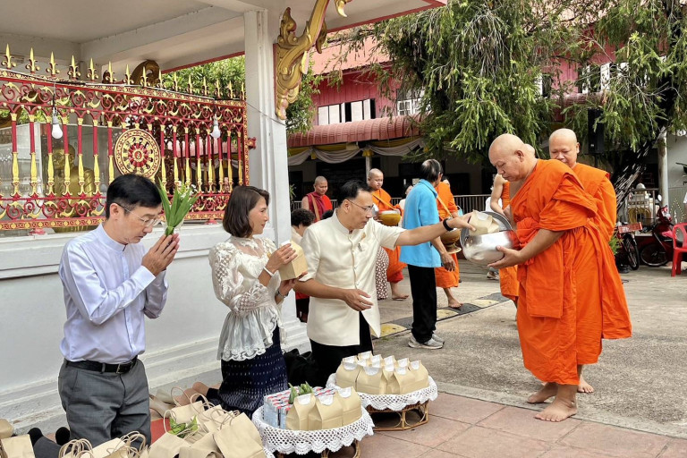 วันที่ 18 ต.ค.67 เวลา 07.00 น. ที่วัดมหาธาตุ (พระอารามหลวง) ตำบลในเมือง อำเภอเมืองยโสธร จังหวัดยโสธร นายชรินทร์ ทองสุข ผู้ว่าราชการจังหวัดยโสธร พร้อมด้วย นางสินีนาฏ ทองสุข นายกเหล่ากาชาดจังหวัดและประธานแม่บ้านมหาดไทยจังหวัดยโสธร นายชาญชัยศรศรีวิชัย รองผู้ว่าราชการจังหวัดยโสธรนายอำเภอเมืองยโสธร หัวหน้าส่วนราชการ และพุทธศาสนิกชน ร่วมพิธีทำบุญตักบาตรเทโวโรหณะเนื่องในวันออกพรรษา โดย ผู้ว่าราชการจังหวัดยโสธร ประธานในพิธีจุดธูปเทียนบูชาพระรัตนตรัย จากนั้นพระสงฆ์นำเจริญจิตภาวนา ประธานรับพร กราบลาพระรัตนไตร จากนั้นผู้ว่าราชการจังหวัดยโสธรพร้อมคณะรวมถึงพุทธศาสนิกชนประจำจุดตักบาตรรอบพระอุโบสถ และเจดีย์พระธาตุอานนท์รอตักบาตรกับเทวดา พระเทพวงศาจารย์ เจ้าคณะจังหวัดยโสธร เจ้าอาวาสวัดมหาธาตุพระอารามหลวง และพระสงฆ์