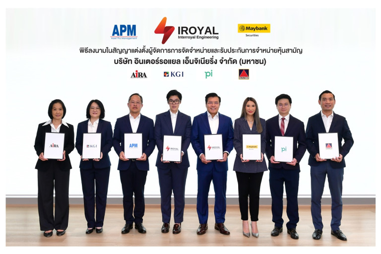 นางสาวประภาพรรณ ประภัทรโพธิพงศ์ กรรมการบริษัทฯ นายภณภัทร เมฆาสุวรรณดำรง ประธานเจ้าหน้าที่บริหาร บริษัท อินเตอร์รอแยล เอ็นจิเนียริ่ง จำกัด (มหาชน) หรือ IROYAL พร้อมด้วยนายสมศักดิ์ ศิริชัยนฤมิตร ประธานเจ้าหน้าที่บริหาร บริษัท แอสเซท โปร แมเนจเม้นท์ จำกัด ในฐานะที่ปรึกษาทางการเงิน และนางสาวนลิน วิริยะเสถียร กรรมการผู้จัดการ ฝ่ายวาณิชธนกิจ บริษัทหลักทรัพย์ เมย์แบงก์ (ประเทศไทย) จำกัด (มหาชน) ร่วมพิธีลงนามสัญญาแต่งตั้ง บริษัทหลักทรัพย์ เมย์แบงก์ (ประเทศไทย) จำกัด (มหาชน) เป็นผู้จัดการการจัดจำหน่ายและรับประกันการจำหน่าย และแต่งตั้งบริษัทหลักทรัพย์ ไอร่า จำกัด (มหาชน) บริษัทหลักทรัพย์ เคจีไอ (ประเทศไทย) จำกัด (มหาชน) บริษัทหลักทรัพย์ พาย จำกัด (มหาชน) และ บริษัทหลักทรัพย์ ทรีนีตี้ จำกัด เป็นผู้จัดจำหน่ายและรับประกันการจำหน่ายหุ้นสามัญต่อประชาชนเป็นครั้งแรก (IPO) ของ IROYAL จำนวนไม่เกิน 58 ล้านหุ้น โดยกำหนดราคาเสนอขาย IPO ที่ 6.50 บาทต่อหุ้น และเปิดให้นักลงทุนรายย่อยจองซื้อในวันที่ 24-25 และ 28 ตุลาคม 2567 คาดว่าจะนำหุ้น IROYAL เข้าซื้อขายในตลาดหลักทรัพย์เอ็ม เอ ไอ (mai) ภายในเดือนพฤศจิกายนนี้