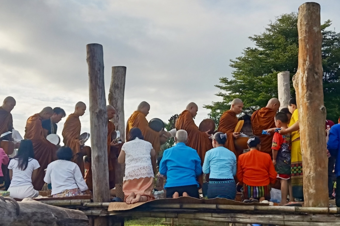วัดภูสมะณาราม จัดทำพิธีทำบุญตักบาตรในเทศกาลออกพรรษา บนสะพานซูตองเป้ แหล่งท่องเที่ยวชื่อดัง ของจังหวัดแม่ฮ่องสอน พบคนมาทำบุญน้อยเหตุไม่มั่นใจสะพานประกอบกับผืนนาที่สวยงามในปีนี้ไม่มีให้เห็นหลังน้ำท่วมกว่า 40 วันทำให้วิวสะพานหมดความหมาย