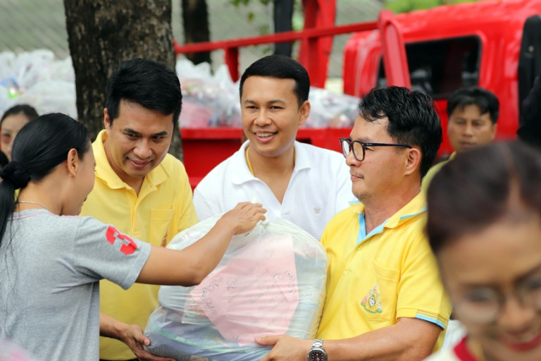 วันที่ 18 ต.ค.67 ที่สนามฟุตบอล PNC FOOTBALL CLUB ต.บ้านกลาง อ.เมือง จ.ปทุมธานี นายปัญญา นพขำ นายกเทศมนตรีตำบลบ้านกลาง นายสายัณ นพขำ ที่ปรึกษานายกเทศบาลตำบลบ้านกลาง นายศุภชัย นพขำ (อดีต ส.ส.เต๋า) พร้อมสมาชิกสภาตำบลบ้านกลาง ข้าราชการ ร่วมกันนำถุงยังชีพแจกให้กับประชาชนที่ได้รับผลกระทบจากน้ำท่วม หมู่ที่ 3,4,5 ตำบลบ้านกลาง จังหวัดปทุมธานี