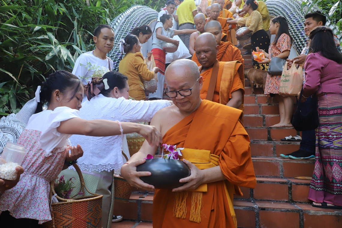 วันที่ 18 ต.ค.67 เวลา 06.30 น. พระครูอนุยุตสังฆกิจ เจ้าคณะอำเภอปางมะผ้า ( เจ้าอาวาสวัดปางหมู ) นำคณะศรัทธาญาติโยม ประชาชน และนักท่องเที่ยว ร่วมทำบุญตักบาตรเทโวโรหนะ เนื่องในเทศกาลวันออกพรรษา ประจำปี 2567 ณ พระธาตุวัดปางหมู ต.ปางหมู อ.เมือง จ.แม่ฮ่องสอน โดยมีพระสงฆ์สามเณร ออกรับบิณฑบาต ข้าวสารอาหารแห้ง จากประชาชน และนักท่องเที่ยวจำนวน 29 รูป เพื่ออนุรักษ์ประพณีอันดีงามให้คงอยู่ อีกทั้งเป็นการสืบทอดพระพุทธศาสนาให้ยั่งยืนสืบไป