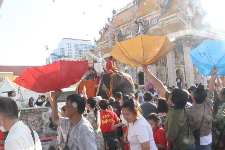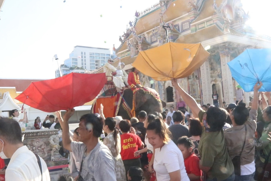 ซึ่งภายในพิธีขบวนแห่นาคทั้งสองได้นั่งช้างวนรอบโบสถ์อย่างยิ่งใหญ่พร้อมห้อยพระดังหลายองค์สิบองค์มูลค่าเกิน 100 ล้านบาท และโปรยทานหลายแสนบาท ขณะที่บรรดาตัวตึงแห่งวงการรับเหรียญโปรยทาน ขึ้นโบสถ์ขโมยเหรียญโปรยทานหลายตระกร้า ซึ่งเจ้าหน้าตำรวจได้รวบตัวได้ทันควัน