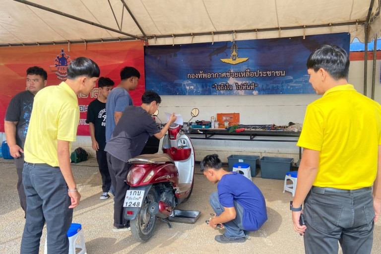 วันที่ 20 ต.ค.2567 กองทัพอากาศโดย กองบิน 41 ร่วมกับบริษัทอุตสาหกรรมการบิน จำกัด และน้องๆจิตอาสาจาก วิทยาลัยเทคนิคดอนเมือง ให้บริการซ่อมจักรยานยนต์ ได้ดำเนินการมาแล้วเป็นวันที่ 3 (17-19 ต.ค.67)