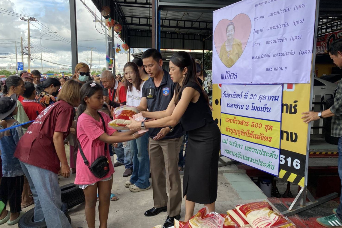 20 ค.ค.67 ผู้สื่อข่าวรายงานว่า ที่ร้านโฮมยาง ซอยชัยพฤกษ์ 2 เมืองพัทยา จ.ชลบุรี ครอบครัวแหวนประดับ นำโดย ผกก.เบียร์ พ.ต.อ.นิทัศน์ แหวนประดับ ผกก.ปพ.บก.สส.ภ.2 ได้จัดทำบุญทิศส่วนกุศลให้กับคุณแม่จิตร วิภาพร แหวนประดับ ที่ล่วงลับไปแล้วเมื่อ 5 ปีก่อน โดยการตั้งโต๊ะทำบุญบริจาคข้าวหอมมะลิ ออร่า ถุงละ 5 กิโลกรัม นน.หนักรวม 2.5 ตัน พร้อมเงินสด 100 บาท ทั้งหมด 500 ชุด