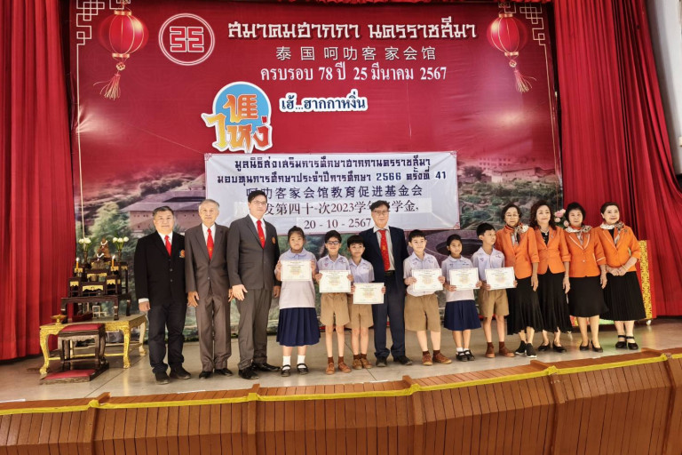 เมื่อวันที่ 20 ตุลาคม ที่สมาคมฮากกานครราชสีมา นายอภิชาติ จงเจริญใจ ประธานมูลนิธิส่งเสริมการศึกษาพร้อมคณะกรรมการบริหารองค์กรร่วมมอบทุนการศึกษาครั้งที่ 41 โดยมีนักเรียน นักศึกษาที่มีเลือดเนื้อเชื้อไขเป็นลูกหลานชาวฮากกาหรือจีนแคะที่มีผลการเรียน การศึกษาตั้งแต่ระดับประถมศึกษาถึงปริญญาตรีและผ่านเกณฑ์ที่กำหนดรับมอบจำนวน 72 ทุน รวมเป็นเงิน 166,500 บาท