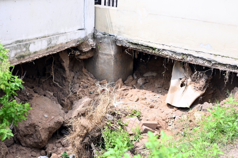 เมื่อไปถึงที่เกิดเหตุพบชาวบ้านที่ได้รับความเดือดร้อนช่วยกันขนย้ายข้าวของที่จำเป็นย้ายมาไว้ในที่ที่ปลอดภัย ส่วนบริเวณที่ดินสไลด์ทำให้กำแพงบ้านทรุดนั้น จนท.ได้ตรวจสอบอย่างละเอียดและช่วยประสานกับเจ้าของโครงการหมู่บ้านเพื่อเจรจาหาข้อตกลงร่วมกัน ส่วนเรื่องความเสียหายนั้นเบื้องต้นทางโครงการหมู่บ้านจะทำการซ่อมแซมให้ลูกบ้านทุกหลัง และทาง อบต.จะทำเรื่องทางระบายน้ำข้างกำแพงหมู่บ้านเพื่อเร่งระบายน้ำท่วมขัง และป้องกันปัญหาน้ำระบายไม่ทันต่อไป
