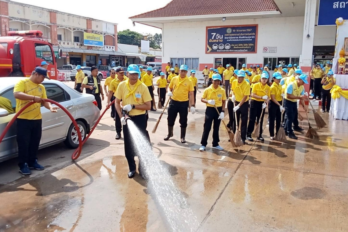 วันที่ 23 ต.ค.67 ที่สถานีขนส่งเทศบาลเมืองยโสธร ตำบลในเมืองอำเภอเมืองยโสธรจังหวัดยโสธร นายชรินทร์ ทองสุข ผู้ว่าราชการจังหวัดยโสธรเป็นประธานเปิดกิจกรรมจิตอาสาพัฒนา เนื่องในวันสวรรคตพระบาทสมเด็จพระจุลจอมเกล้าเจ้าอยู่หัว รัชกาลที่ 5 23 ตุลาคม 2567เพื่อถวายเป็นพระราชกุศลและน้อมรำลึกพระพระบาทสมเด็จพระจุลจอมเกล้าเจ้าอยู่หัวรัชกาลที่ 5 โดยมีหัวหน้าส่วนราชการ ทหาร ตำรวจ นายอำเภอเมืองยโสธร ข้าราชการ เจ้าหน้าที่ และประชาชนจิตอาสา เข้าร่วมกิจกรรมล้างทำความสะอาดภายในบริเวณสถานีขนส่งเทศบาลเมืองยโสธรให้มีความสะอาดสวยงาม