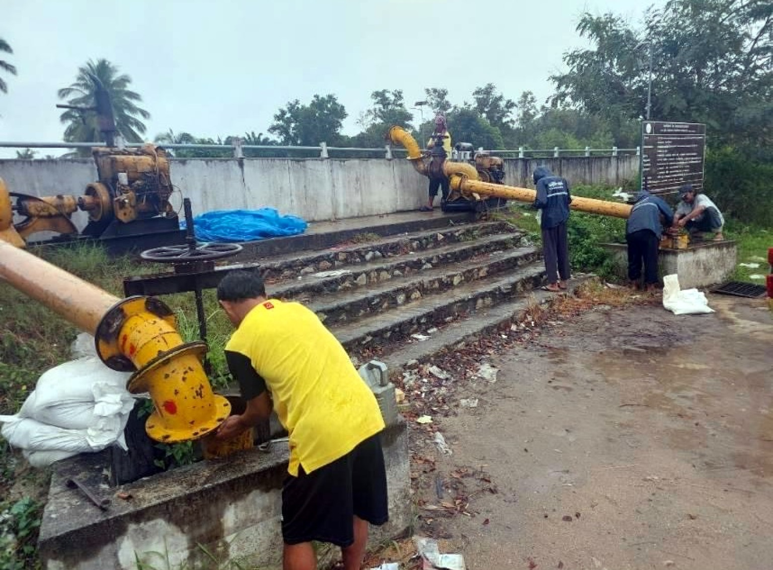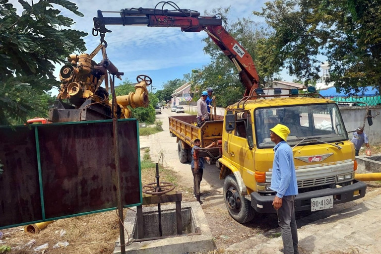 โดยดำเนินการติดตั้งเครื่องสูบน้ำเคลื่อนที่ ขนาด 8 นิ้ว จำนวน 1 เครื่อง เครื่องสูบน้ำ MIT DEUTZ F3L912 หมายเลข 0312171C ณ บริเวณพนังกั้นน้ำโรงพยาบาลหนองจิก ตำบลตุยง อำเภอหนองจิก จังหวัดปัตตานี