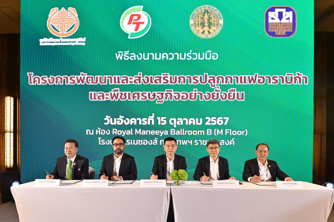 บมจ.พีทีจี เอ็นเนอยี (PTG) ลงนามความร่วมมือกับมูลนิธิแม่ฟ้าหลวง ในพระบรมราชูปถัมภ์ กรมป่าไม้ และธนาคารเพื่อการเกษตรและสหกรณ์การเกษตร (ธ.ก.ส.) เพื่อดำเนินโครงการการ พัฒนาและส่งเสริมการปลูกกาแฟอาราบิก้าและพืชเศรษฐกิจอย่างยั่งยืน ในพื้นที่ที่มีความเหมาะ สมทางสภาพแวดล้อมและชุมชนในประเทศไทยเพื่อร่วมสร้างโอกาสและยกระดับคุณภาพชีวิตของเกษตรกรผู้ผลิตกาแฟมีรายได้และมีชีวิตความเป็นอยู่ที่ดีขึ้น ส่งตรงร้าน “กาแฟพันธุ์ไทย”