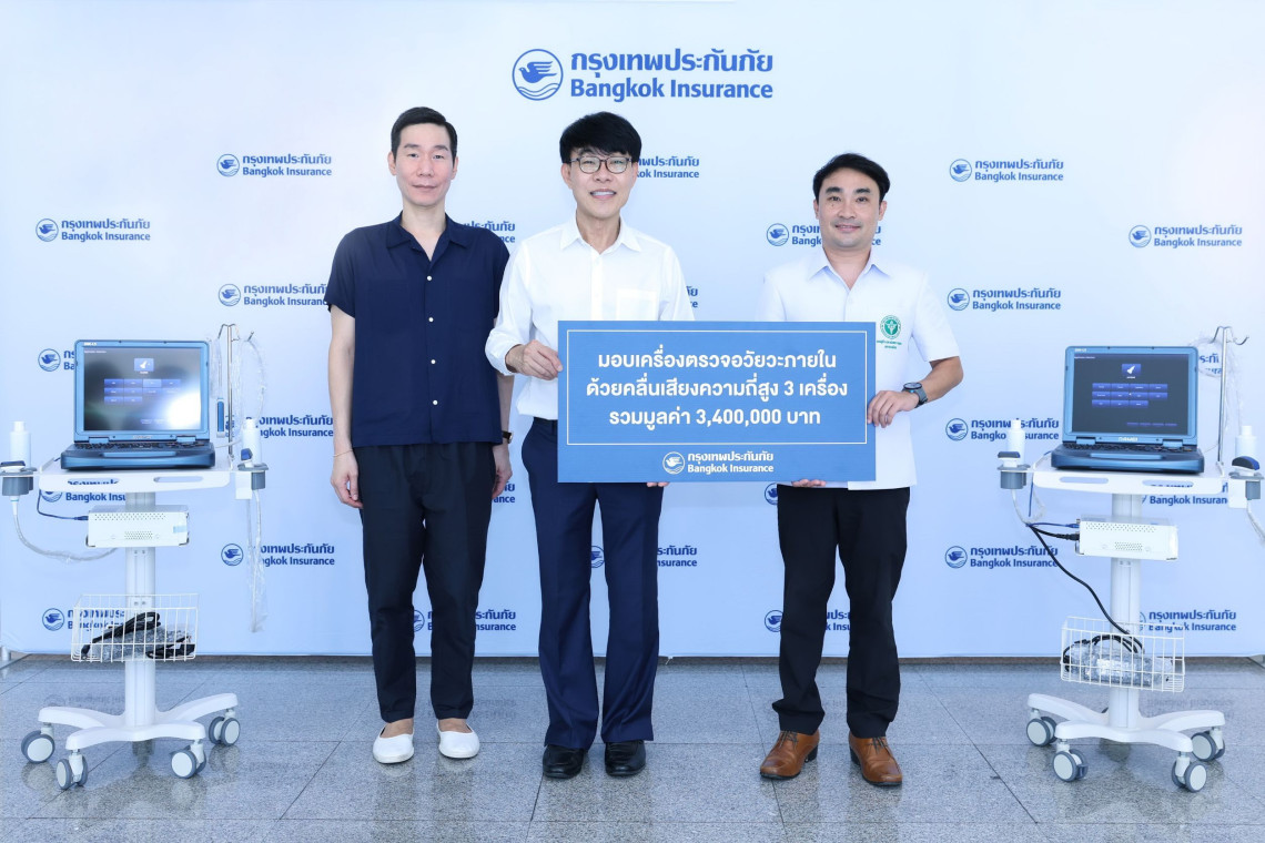ดร.อภิสิทธิ์ อนันตนาถรัตน (ยืนกลาง) ประธานคณะผู้บริหารและกรรมการผู้อำนวยการใหญ่ และนายชวาล โสภณพนิช (ซ้ายสุด) ผู้ช่วยกรรมการผู้อำนวยการใหญ่ บริษัท กรุงเทพประกันภัย จำกัด (มหาชน) มอบครุภัณฑ์ทางการแพทย์ เครื่องตรวจอวัยวะภายในด้วยคลื่นเสียงความถี่สูง จำนวน 3 เครื่อง รวมมูลค่า 3,400,000 บาท ให้แก่โรงพยาบาลสบเมย จังหวัดแม่ฮ่องสอน โดยมีนายแพทย์พิทยา หล้าวงค์ (ขวาสุด) ผู้อำนวยการโรงพยาบาลสบเมย เป็นผู้รับมอบ เพื่อใช้ในการตรวจวินิจฉัยโรคด้วยคลื่นเสียงความถี่สูงช่วยค้นหาความผิดปกติของอวัยวะภายในร่างกาย ซึ่งจะสามารถรักษาผู้ป่วยในพื้นที่จังหวัดแม่ฮ่องสอนและจังหวัดใกล้เคียงได้อย่างมีประสิทธิภาพและเกิดประโยชน์สูงสุด ณ อาคารกรุงเทพประกันภัย ถนนสาทรใต้ เมื่อวันที่ 28 ตุลาคม 2567