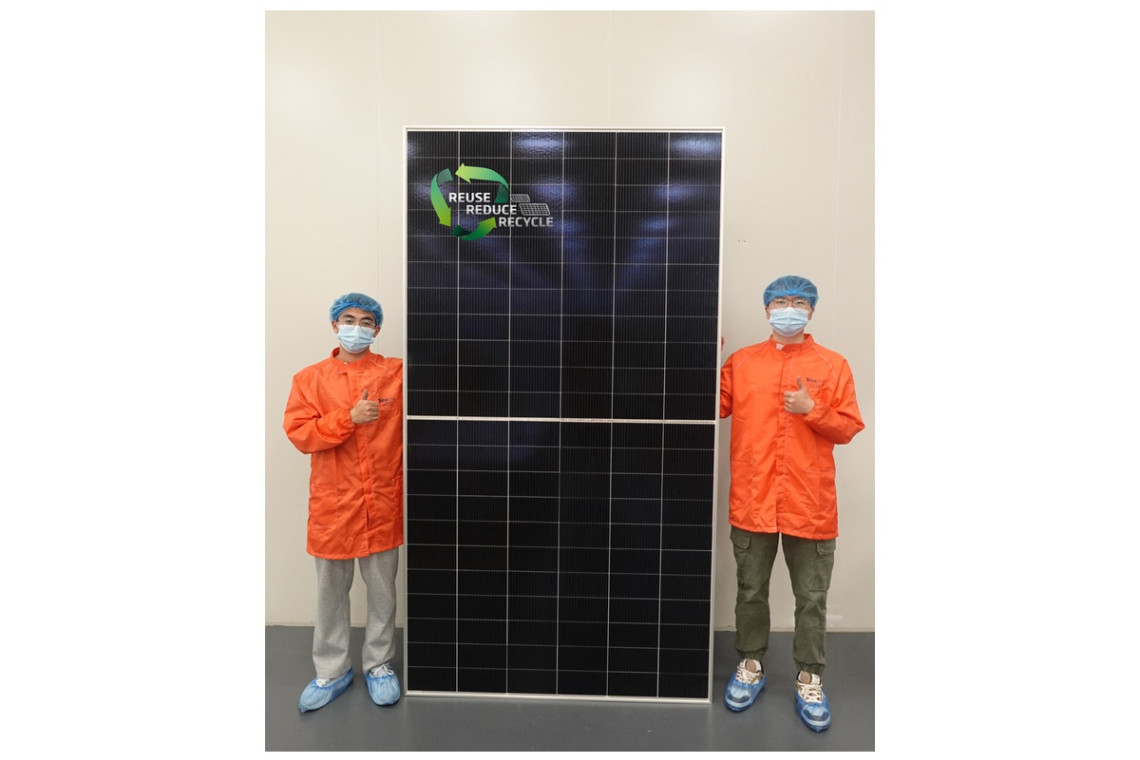 ขณะที่การประสบความสำเร็จในการผลิตโซลาร์เซลล์จากวัสดุรีไซเคิลของทรินาโซลาร์ในครั้งนี้ เกิดขึ้นภายใต้ความพยายามและความร่วมมือของพันธมิตรตั้งแต่ต้นน้ำถึงปลายน้ำ โดยทรินาโซลาร์ประสบความสำเร็จในการรีไซเคิลวัสดุที่มีมูลค่าสูง เช่น กรอบอะลูมิเนียม แก้ว เงิน และซิลิคอน จากแผงโซลาร์เซลล์ที่หมดอายุการใช้งานแล้ว ซึ่งสามารถทำได้ภายใต้นวัตกรรมของทรินาโซลาร์ อาทิ การแยกชั้นขององค์ประกอบทางเคมี เทคโนโลยีการกัดกร่อนด้วยสารเคมี เทคโนโลยีการสกัดเงินด้วยสารเคมีเปียก และนวัตกรรมอื่นๆ โดยแผงโซลาร์เซลล์ที่ผลิตขึ้นจากวัสดุรีไซเคิลนี้ ผลิตภายใต้เทคโนโลยี n-type TOPCon และมีขนาดทองคำ (Golden Size) ที่มีประสิทธิภาพในการเปลี่ยนเป็นพลังงานสูงถึง 20.7% และให้กำลังการผลิตไฟฟ้าได้ถึง 645วัตต์