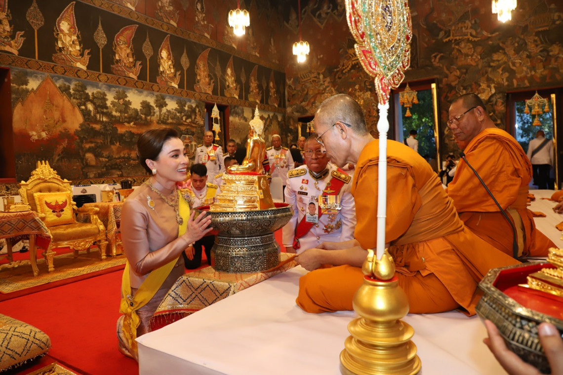 แล้วเสด็จออกจากพระอุโบสถ เสด็จพระราชดำเนินไปยังพระวิหาร ทรงวางพวงมาลัย และทรงจุดธูปเทียนเครื่องนมัสการท้ายที่นั่งบูชาพระพุทธวชิรญาณบพิตร ทรงกราบ เสร็จแล้ว เสด็จพระราชดำเนินไปยังมณฑลพิธีเททองพระพุทธสุวรรณวิชโรภาส ทศมินทราธิราชบพิตร (จำลอง) สมเด็จพระนางเจ้า ฯ พระบรมราชินี ทรงรับแผ่นทอง นาก เงิน แล้วทรงหย่อนลงในช้อน ทรงเทแผ่นทอง นาก เงิน ลงในเบ้า ทรงถือสายสูตรเททองหล่อพระพุทธสุวรรณวชิโรภาส ทศมินทราธิราชบพิตร (จำลอง) พระสงฆ์เจริญชัยมงคลคาถา ชาวพนักงานลั่นฆ้องชัย ประโคมสังข์ แตร ดุริยางค์ พระพุทธสุวรรณวิชโรภาส ทศมินทราธิราชบพิตร (จำลอง) ซึ่งเป็นชื่อพระประธานประจำพระอุโบสถ ที่ พระบาทสมเด็จพระเจ้าอยู่หัว พระราชทานชื่อให้ใหม่ซึ่งมีความหมายว่า พระพุทธปฏิมากร ทรงมีรัศมีแห่งทอง และเพชร อันพระมหากษัตริย์ รัชกาลที่ 10ทรงบูชา เสร็จแล้ว เสด็จออกจากมณฑลพิธีไปประทับรถยนต์พระที่นั่ง เสด็จพระราชดำเนินไปยังวัดนิเวศธรรมประวัติ อำเภอบางปะอิน จังหวัพระนครศรีอยุธยา